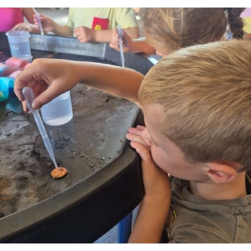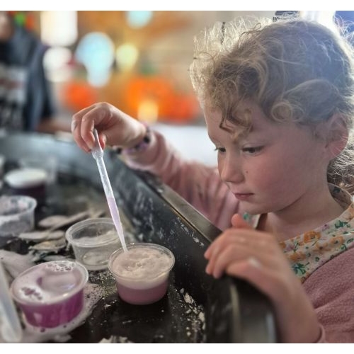 Throughout each holiday period, children explore a range of hands on science themes. They might mix colourful solutions and watch simple reactions unfold, build small rocket style experiments to learn about space, or investigate the natural world through lifecycles and habitats.